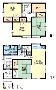4LDK (和室:6畳、6畳) (洋室:6、6)、10.5LDK