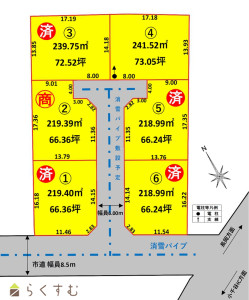 ・電柱、支柱、支線のある区画は各5万円を価格から値引きいたします。(設置区画に変更が生じる場合があります。)