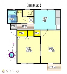 2DK (洋室:7、7.5)、DK6