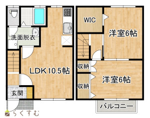 2LDK (洋室:6、6)、LDK10.5