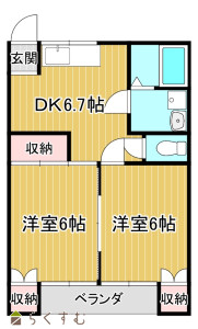 2DK (洋室:6、6)、DK6.7