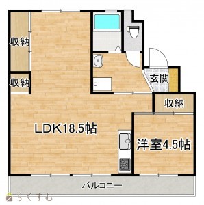 1LDK (洋室:4.5)、LDK18.5