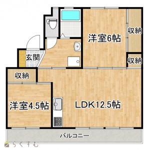 2LDK (洋室:6、4.5)、LDK12.5