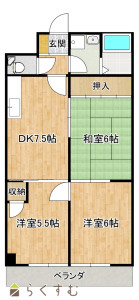 3DK (和室:6畳) (洋室:6、5.5)、DK7.5