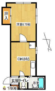1DK (洋室:6.75)、DK6