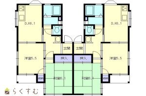 2DK (和室:6.1畳) (洋室:5.5)