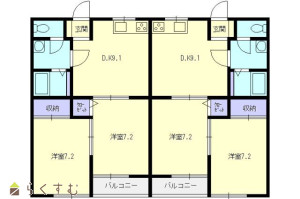 2DK (洋室:7.2、7.2)