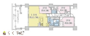 3LDK (洋室:4.5、4.5、6)、LDK15.7