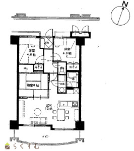 3LDK (和室:4.6畳、6畳) (洋室:4.8)、LDK12