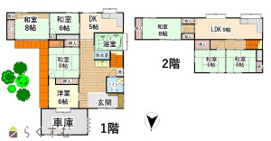 7LDK (和室:6畳、8畳、8畳、6畳、6畳、8畳) (洋室:6)、LDK9、DK5