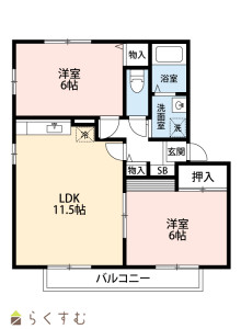 2LDK (洋室:6、6)、LDK11.5