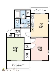 2DK (和室:6畳) (洋室:6)、DK6