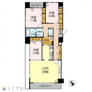 3LDK (洋室:7.7、6.2、5.4)