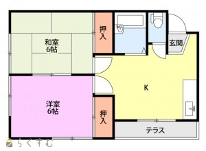 2DK (和室:6畳、6畳)