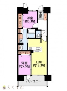 2LDK (洋室:5.6、5.3)