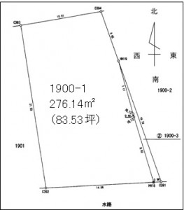 土地面積は実測276.14㎡(83.53坪)登記上182㎡(55.05坪)
