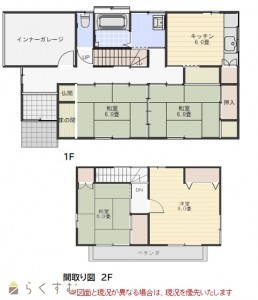 4DK、駐車2台可能(車庫は軽自動車1台分)