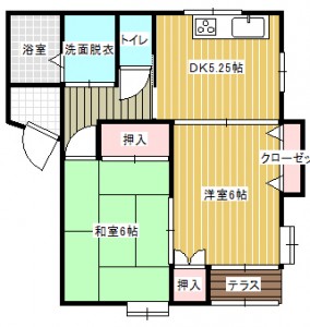2DK (和室:6畳) (洋室:6)、DK5.25