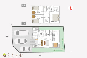 角地、整形地、日当り良好、閑静な住宅街、BELS/省エネ基準適合認定建物、瑕疵担保保険付き、建物確認・完了検査済証あり、フラット35S適合、LDK15畳以上、全室フローリング、駐車場2台以上、駐車場3台以上、南向き、TVインターホン、複層ガラス、ディンプルキー、システムキッチン、カウンターキッチン、IHクッキングヒーター、追いだき機能付き、バス1坪以上、温水洗浄便座、シャワー付き洗面台、エアコン、24時間換気システム、オール電化、省エネ給湯、上水道、下水道、電気、ウォークインクローゼット、全居室収納あり、シューズインクローゼット、シューズBOX、即引き渡し可能