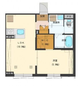 1LDK (洋室:5.9)、10.9