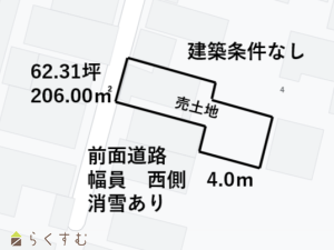 学校近く!建築条件なし!前面道路消雪あり!