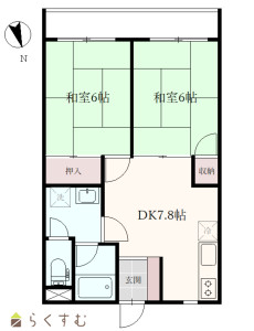 2DK (和室:6畳、6畳)、DK7.8