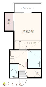 1K (洋室:6)、K2、ロフト付き:約3帖