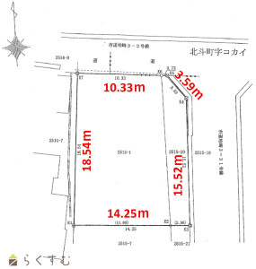 ※地積更正登記は行わず、登記簿上の面積での売買となります。