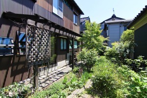 与板のまちの中心地に建つ店舗併用住宅です。住居部分は通り土間があり、古民家の趣が感じられます。