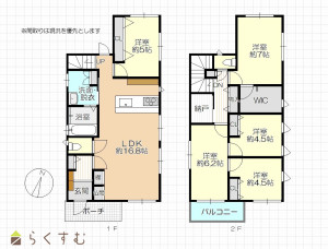 5LDK (洋室:5、7、6.2、4.5、4.5)、LDK16.8