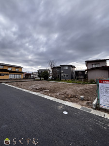 前道6m以上、更地、学校近く、閑静な住宅街、建築条件なし、所有権、側溝、上水道(前面道路)、下水道(前面道路)、上水道(宅地内)、下水道(宅地内)、前面道路融雪設備あり、住宅向け