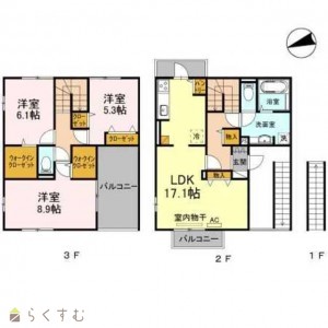 3LDK (洋室:8.9、6.1、5.3)