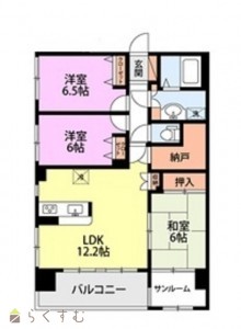 3LDK (和室:6畳) (洋室:6、6.5)