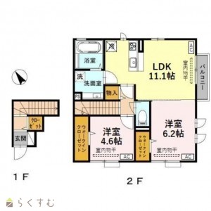 2LDK (洋室:6.2、4.6)