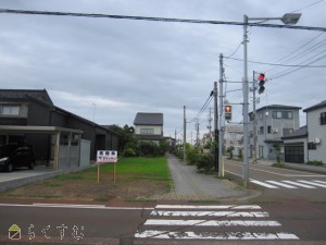 角地、前道6m以上、南側道路面す、更地、学校近く、スーパー近く、最寄り駅近く、建築条件なし、所有権、即引き渡し可、側溝、都市ガス(前面道路)、下水道(前面道路)、電気、下水道(宅地内)、前面道路融雪設備あり、住宅向け