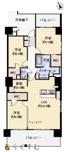 3LDK (洋室:7、6、6)、LDK16.5