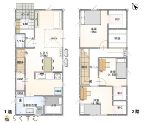 • 間取り 3LDK (洋室:6、5.3、4.5)、LDK16、全居室にウォークインクローゼット有(3箇所)
