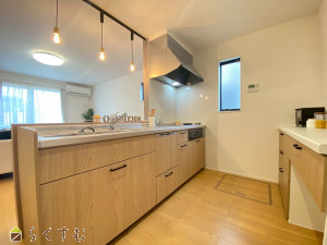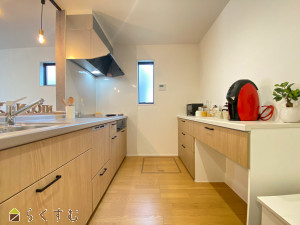 ナチュラルな木目が映える、落ち着きのあるキッチン。