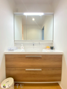 朝の身支度に便利な3面鏡は、鏡裏に大容量の収納を完備。