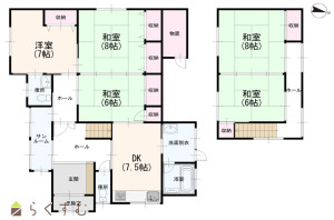 1階和室8帖 エアコン・大型収納付きのお部屋です。