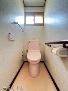 L字手すり付きで安心、洗面台も備えた使いやすいトイレ。