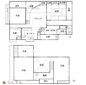 5LDK (和室:12畳) (洋室:15、12、8、6)、LDK18、2014年フルリフォーム済(内装全面、屋根、外壁、キッチン、トイレ、浴室)