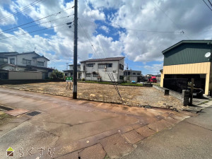 整形地、スーパー近く、閑静な住宅街、建築条件なし、所有権、即引き渡し可、上水道(宅地内)、下水道(宅地内)、前面道路融雪設備あり、住宅向け