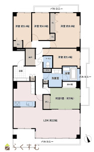 5LDK (和室:5.5畳) (洋室:8.6、5.4、5.4、4.6)、LDK22