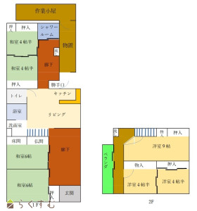 7LDK (和室:6畳、6畳、4.5畳、4.5畳) (洋室:4.5、4.5)、LDK約12、作業小屋あります。