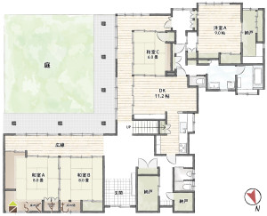 6DK (和室:8畳、8畳、6畳、8畳) (洋室:9.7、6.4)、DK11.2、納戸有