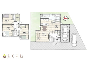 4LDK (洋室:4.5、7.2、6.5、6.2)、LDK17.2、ランドリースペース、インナーガレージ(1台分)有