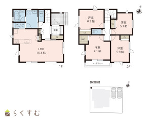 4LDK (洋室:7.1、6.3、5.9、5.1)、LDK16.4