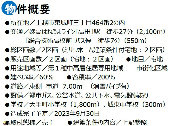 消雪設備あり!≪ミサワホームの分譲宅地≫ 東城町3丁目 詳細