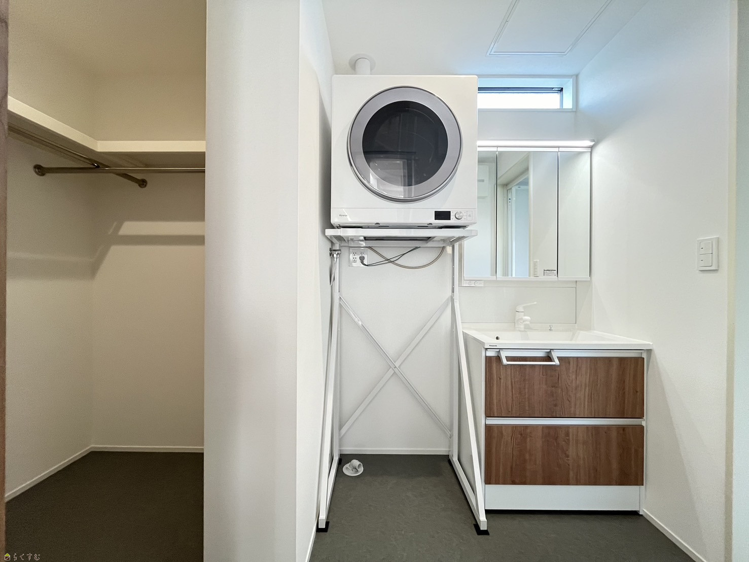 衣類乾燥機『乾太くん』やクローゼット付きの洗面脱衣室。